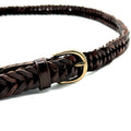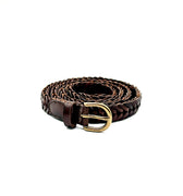 Cette ceinture est en cuir tressé, avec une boucle en laiton. Elle existe en marron ou en couleur naturelle.