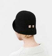 Ce modèle de chapeau est léger et chaud tout à la fois (100% en laine). Avec le détail de la lanière et ses deux petits carrés de cuir, c'est une pièce chic et originale pour la saison froide.