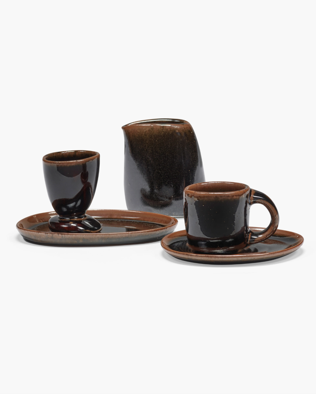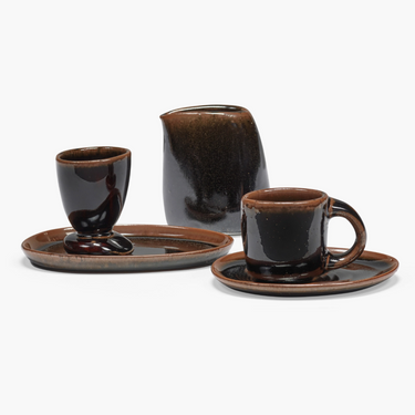 Les coquetiers de la collection Out of Lines d'Uncharted combinent des formes organiques avec des teintes terre telles que le blanc cassé, le noir profond et l'ocre vibrant. Chaque pièce est inspirée par des ovales naturels, rappelant les olives, les citrons et les prunes, ce qui donne un design intuitif alliant fonctionnalité et beauté organique. La série est fabriquée en grès durable et finie avec des glaçures réactifs à l'intérieur et un émail sablé à l'extérieur.