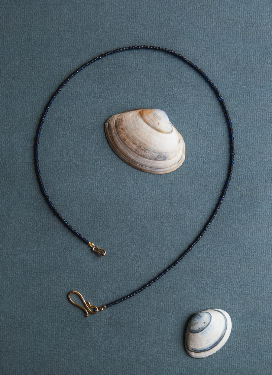 Collier en vermeil (argent plaqué or 5 microns) et Saphir , dimension 42cm.