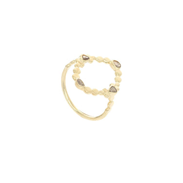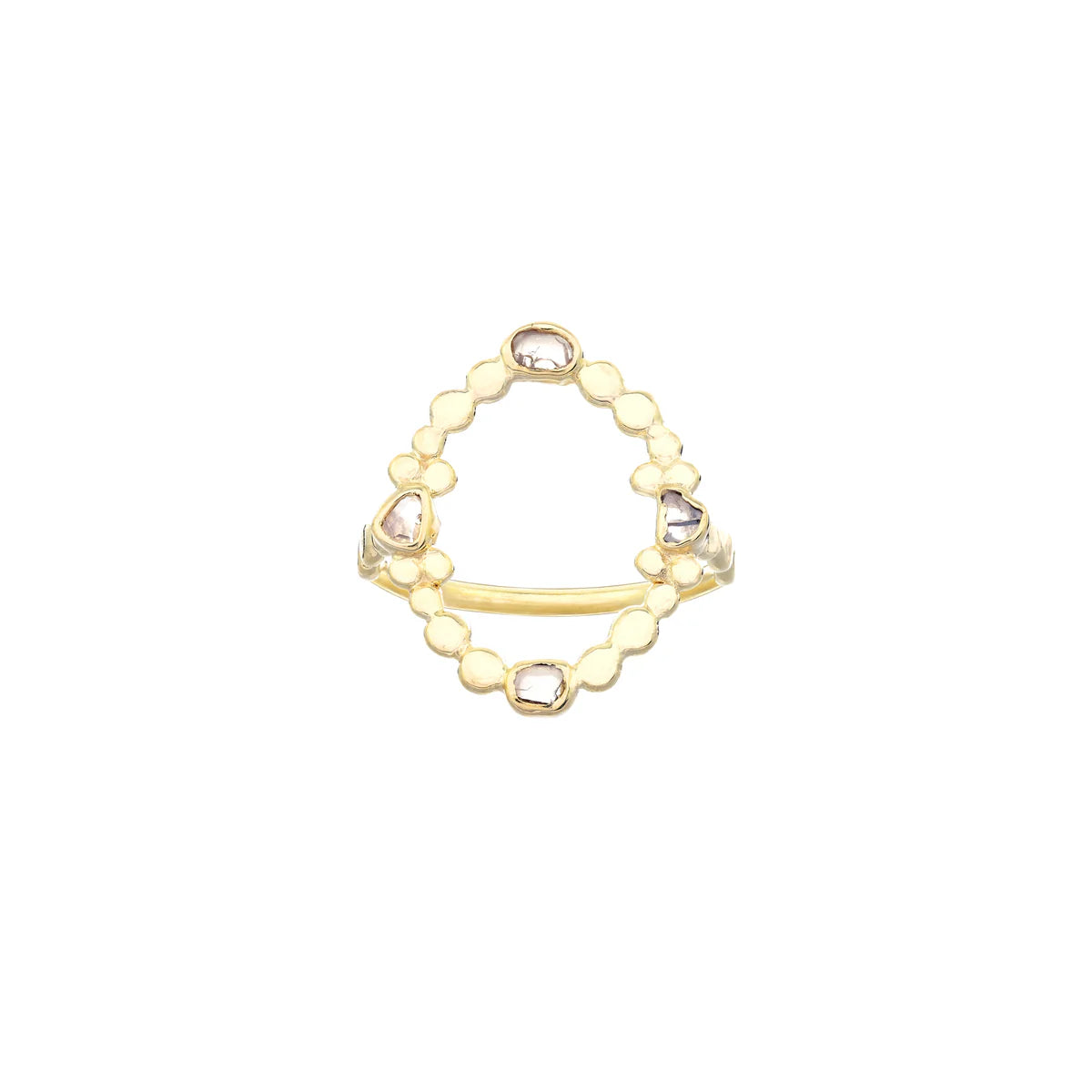 Bague en Argent 925 doré composée d'un anneau oval serti de diamants Polki et de mini pierres en argent façonnées à la main