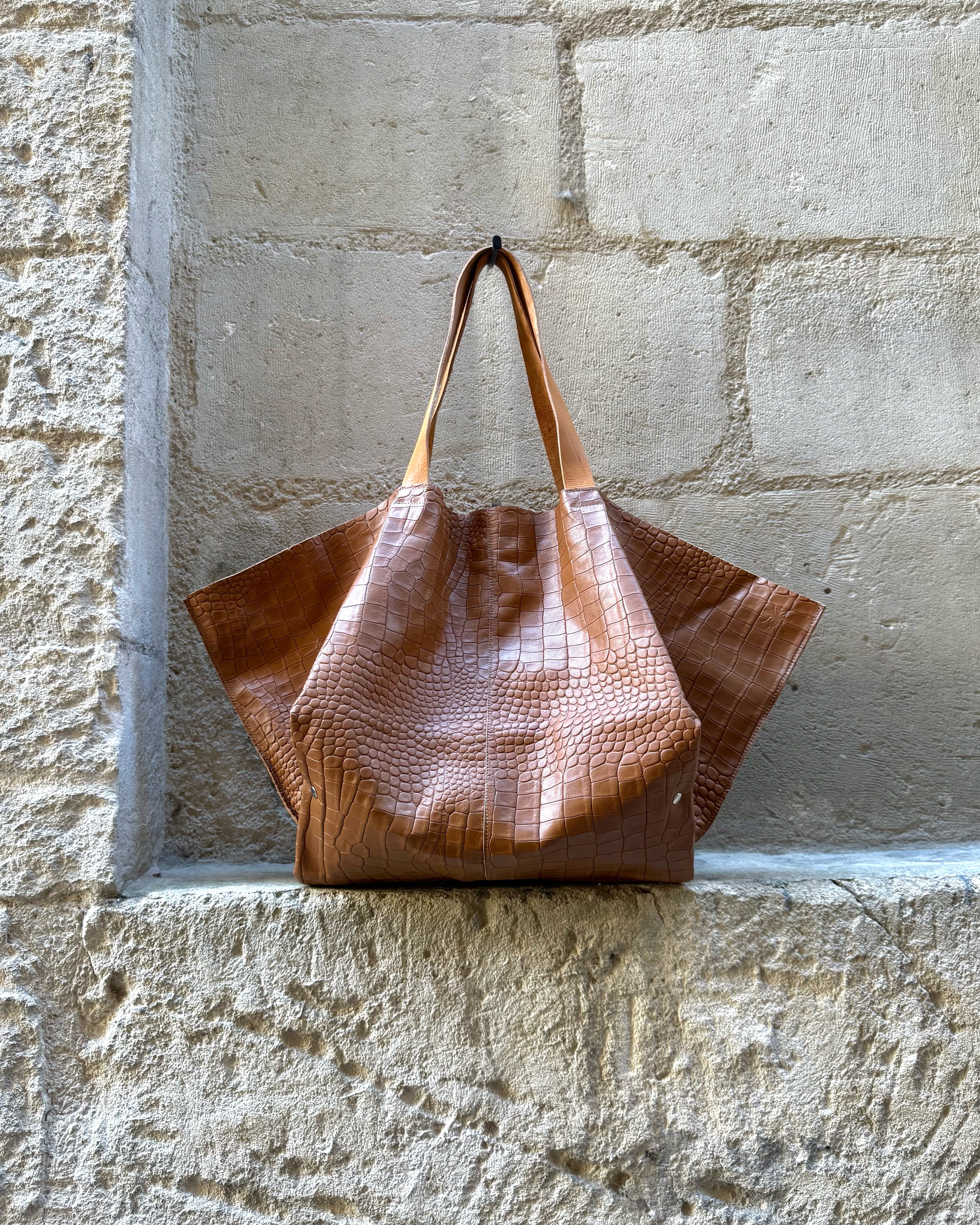 Les dimensions de ce Maxi Cabas sont de 31 x 74 x 35 cm. Il est équipé d'une petite pochette amovible.