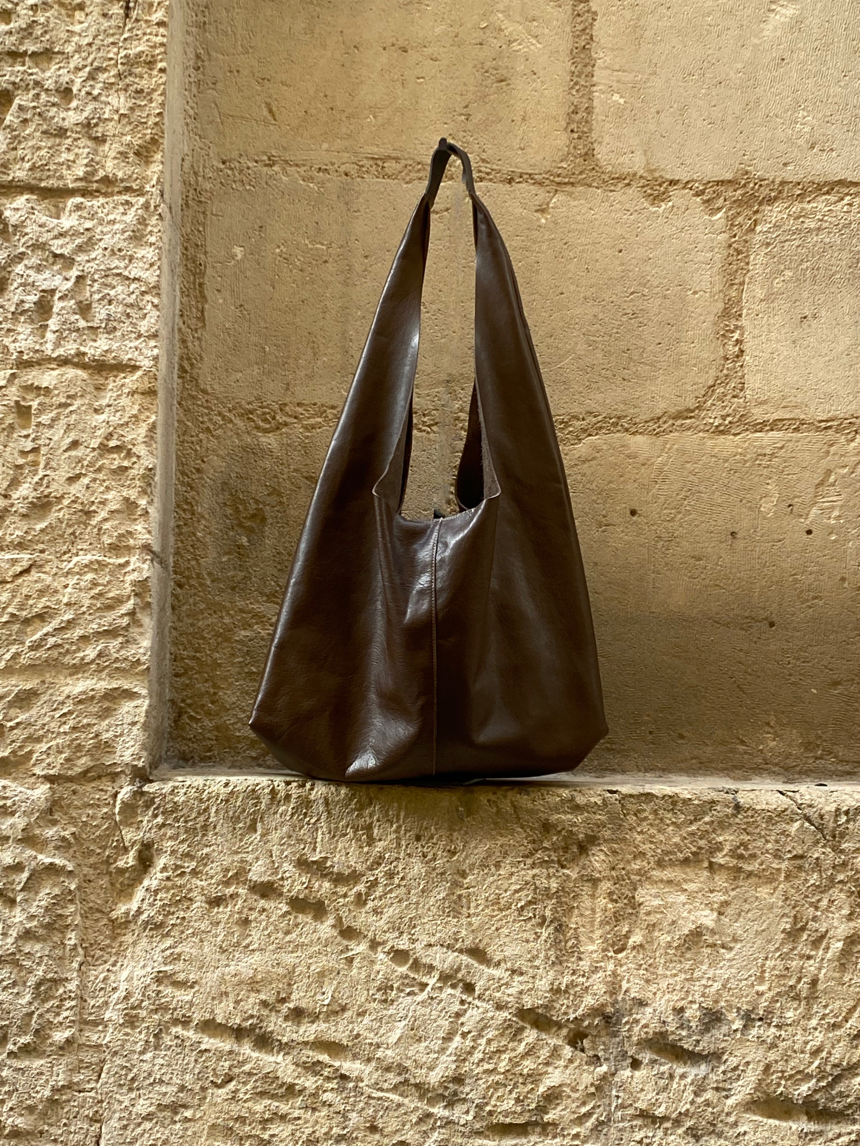 Ce grand cabas très souple se porte à l'épaule. Sac déstructuré ayant un tombant remarquable.