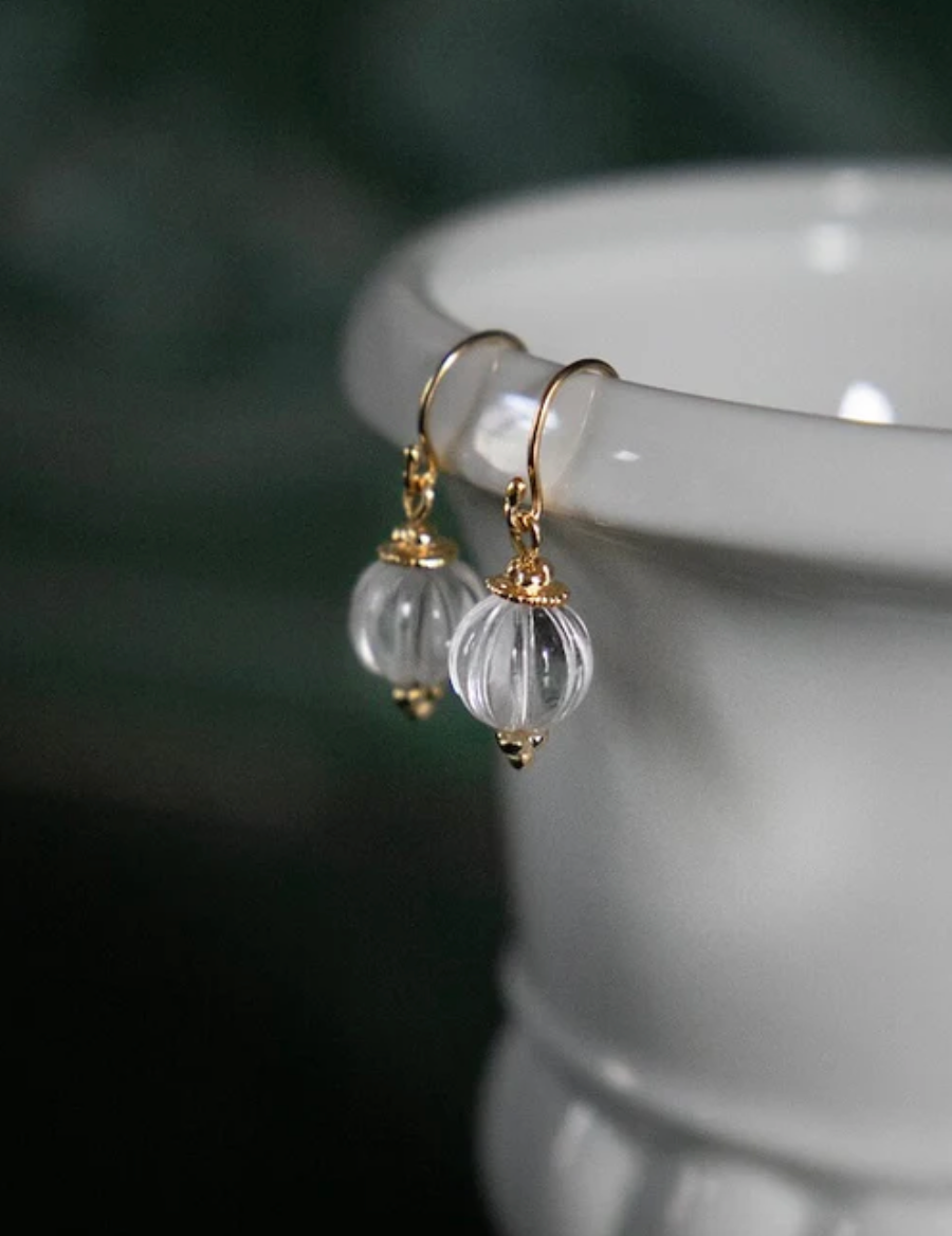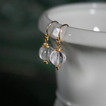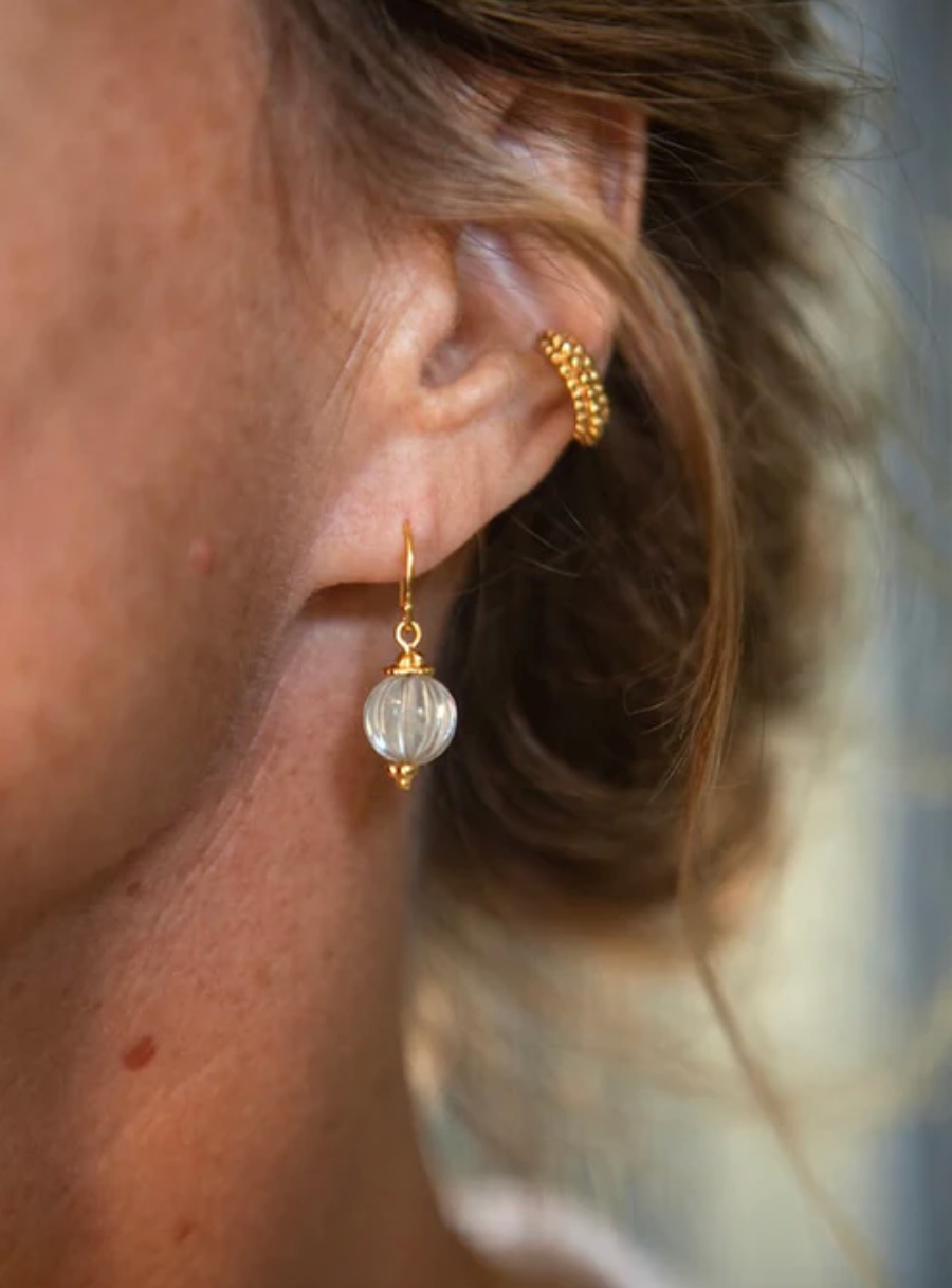 Boucles d'oreille Lucrèce en vermeil (argent plaqué or 5 microns) et cristal de roche.