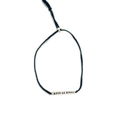 Plaque d'argent gravée, cordon réglable, se décline en plusieurs couleurs selon le message .