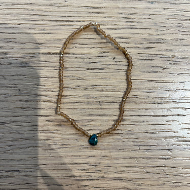 Le bracelet Ellipsi est en laiton incrusté d'or 18 carats et de pierres Labradorite.