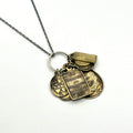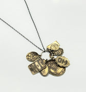 Ce collier se compose de 10 médaillons de la Vierge Marie, en laiton, suspendus à une chaine d'argent.