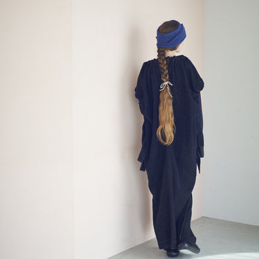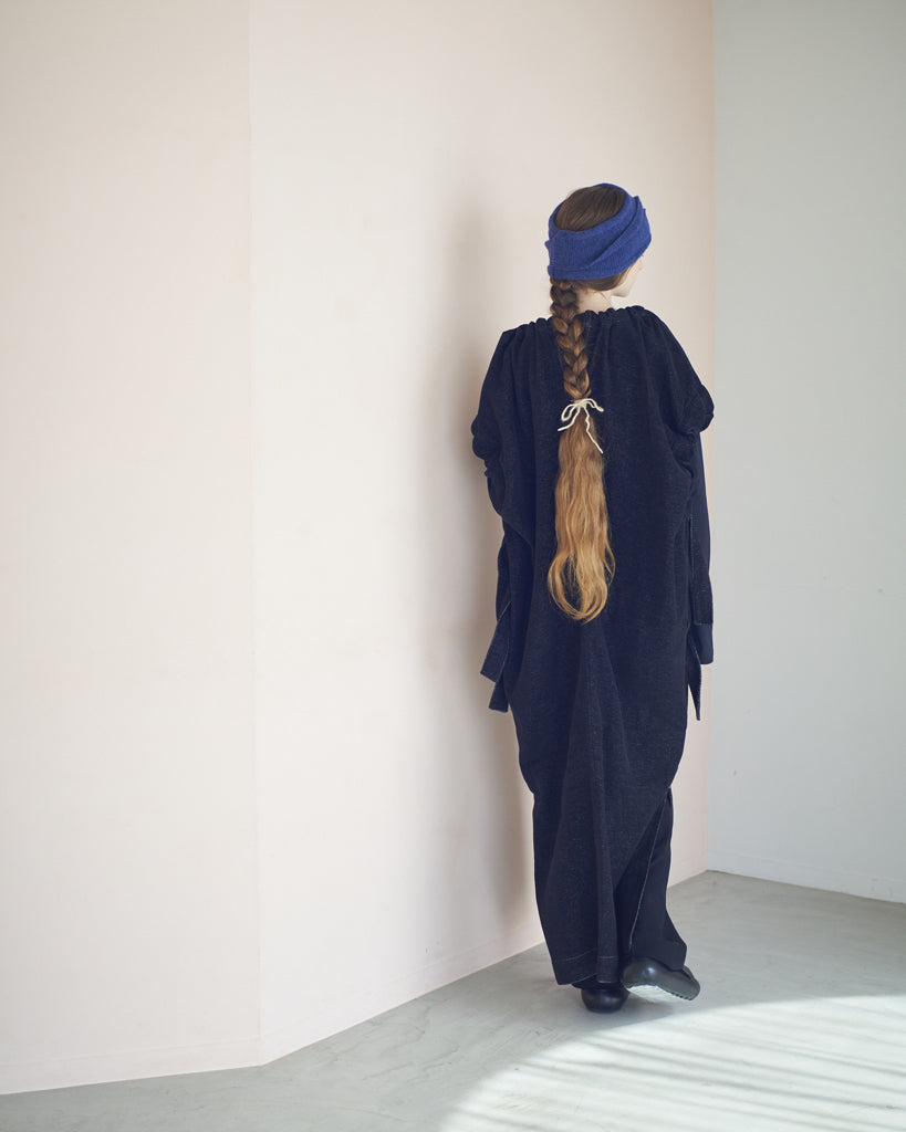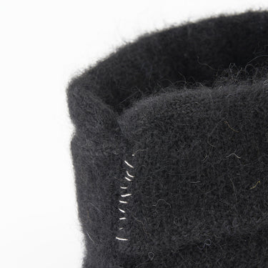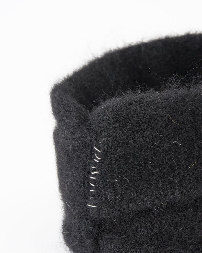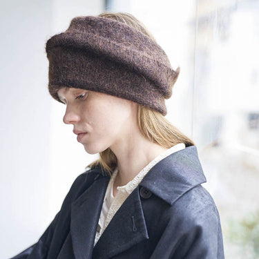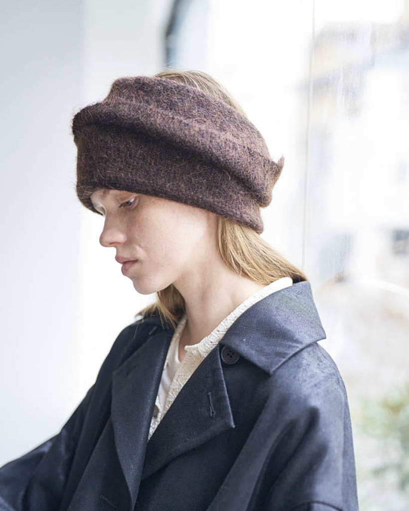 Ce turban de la marque P CNQ est composé à 55% de laine d'alpaga et à 45% de nylon, il est fabriqué, à la main, dans les ateliers de la marque au Japon.