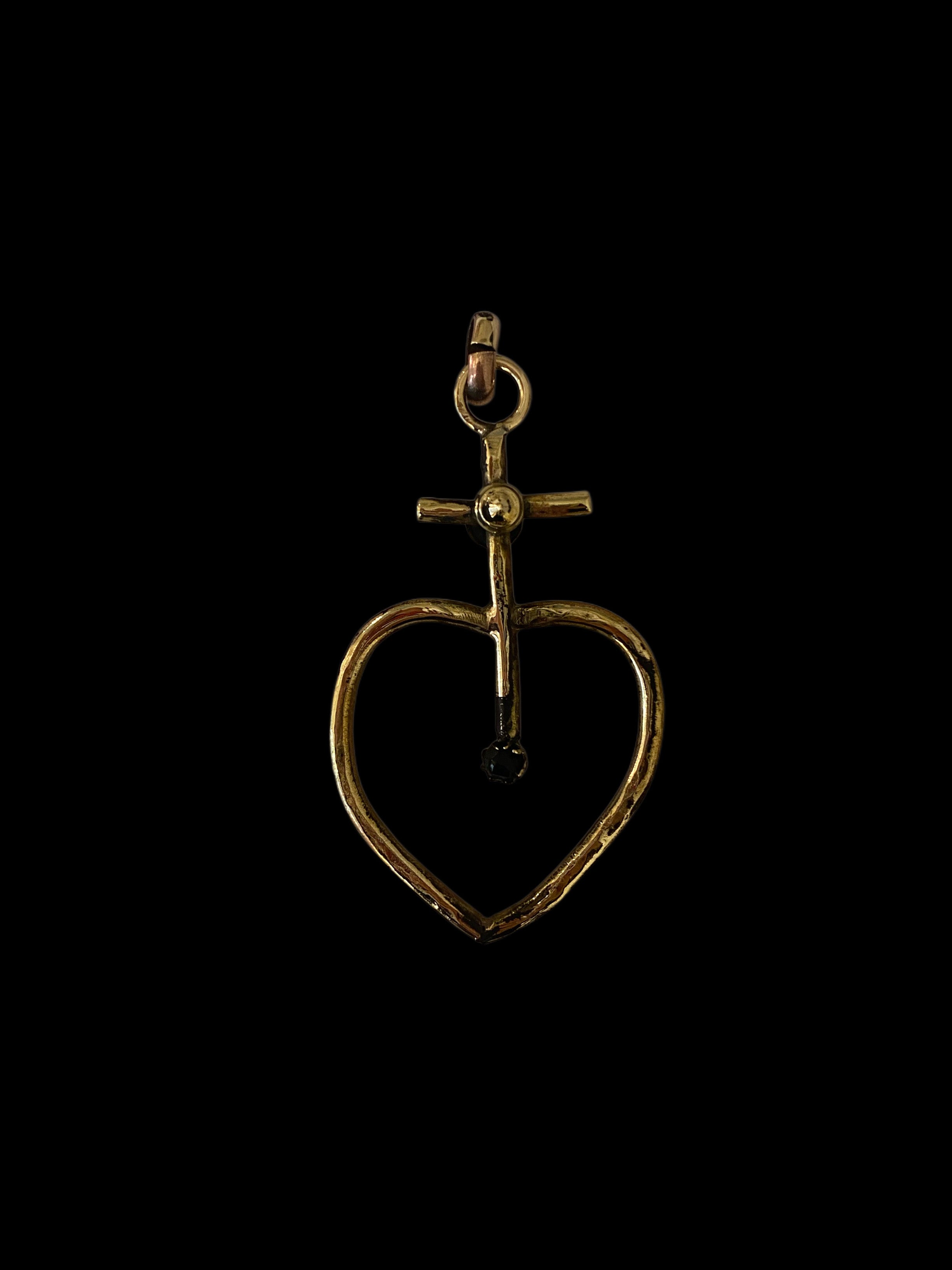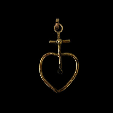 Les Croix sont de tailles et de compositions différentes. Aucune ne se ressemble. Celle-ci est en laiton doré avec une pierre (onyx). La croix mesure 8,5 x 4,5 cm.