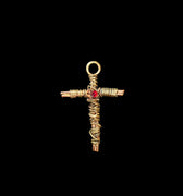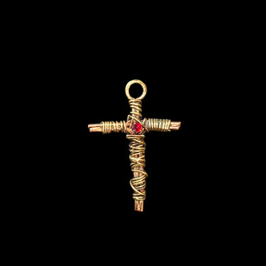 Les Croix sont de tailles et de compositions différentes. Aucune ne se ressemble. Celle-ci est en laiton avec une pierre rouge.