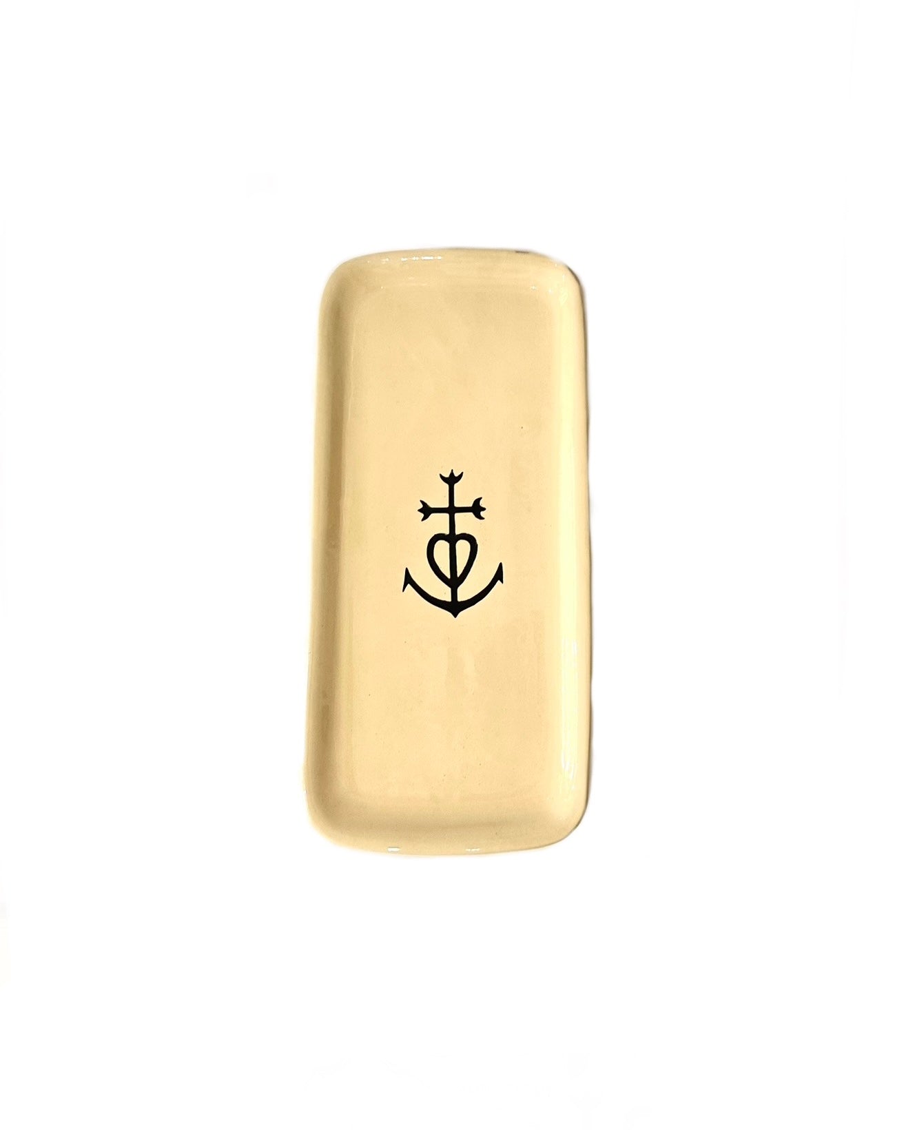 Il fait partie de la collection d'assiettes et plats CROIX CAMARGUAISE qui rend hommage à ce magique symbole magique. Cette croix si particulière, dessinée par Hermann Paul en 1924 à la demande du Marquis de Baroncelli, symbolise la charité par le coeur, la foi par La Croix et l'espérance par l'ancre ; et les trois tridents à l'extrémité de la croix représentent les gardians et l'âme camarguaise.