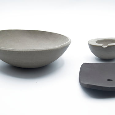 Vaisselle, sculptures urbaines, objets façon brutalité, découlent de sa pratique quotidienne et passionnée.