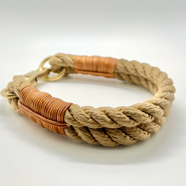 Collier pour chien en corde beige avec finition naturel 100% cuir. Les laisses et colliers en corde sont robustes et durables.