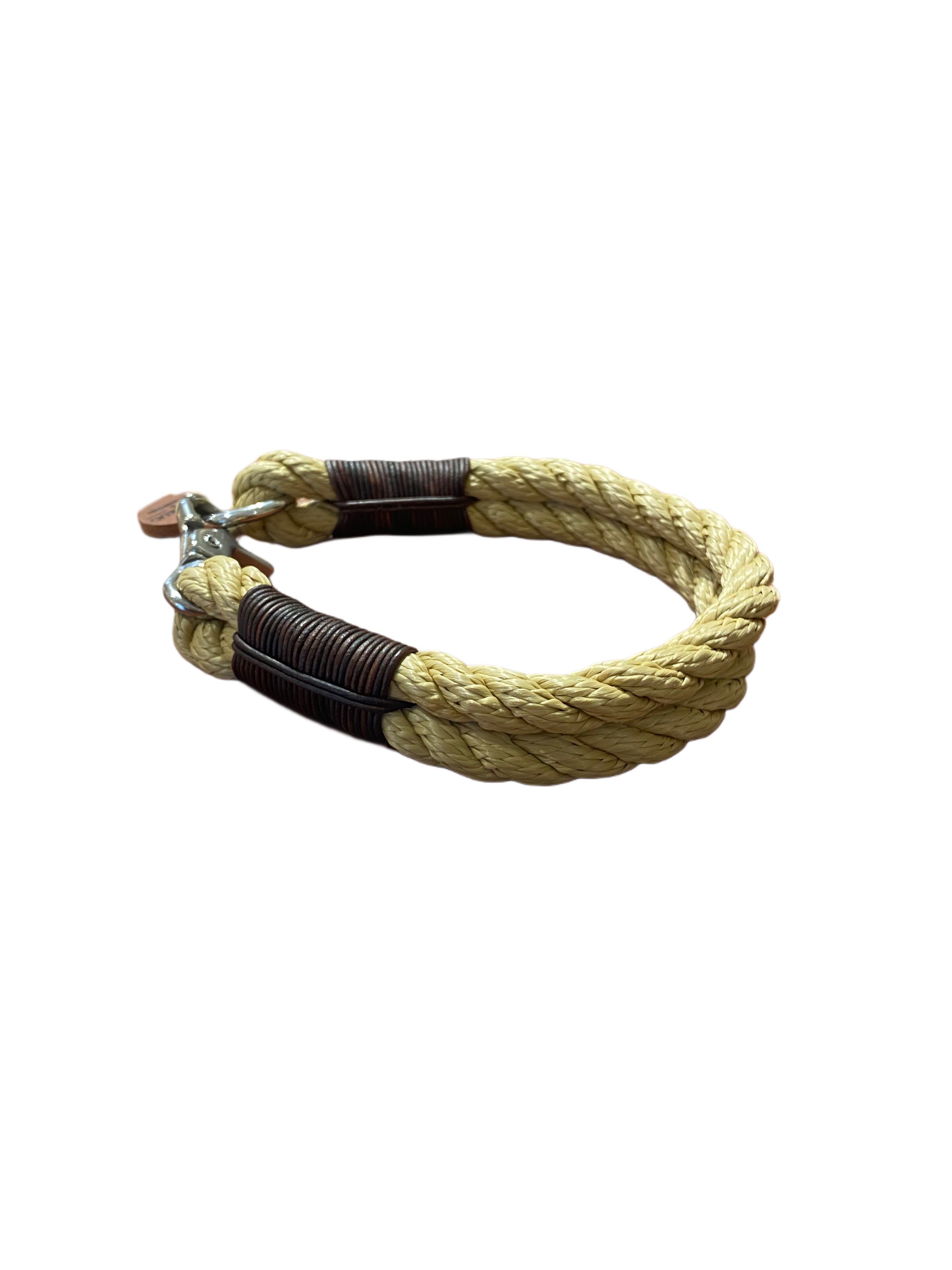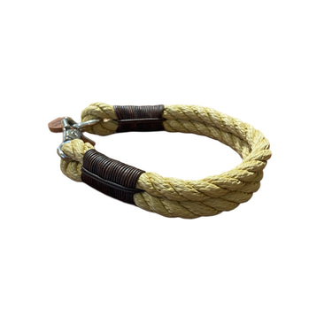 Collier pour chien en corde beige avec finition marron 100% cuir. Les laisses et colliers en corde sont robustes et durables.