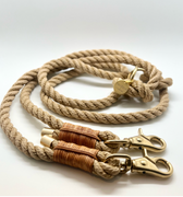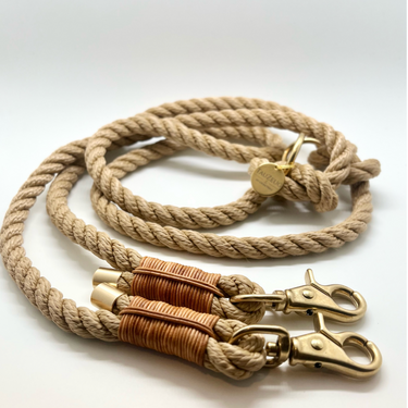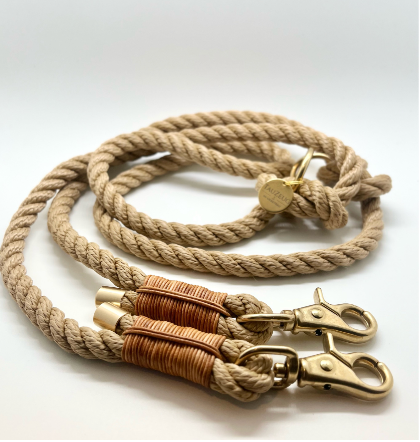 Laisse pour chien en corde beige avec finition naturel 100% cuir. Les laisses et colliers en corde sont robustes et durables.