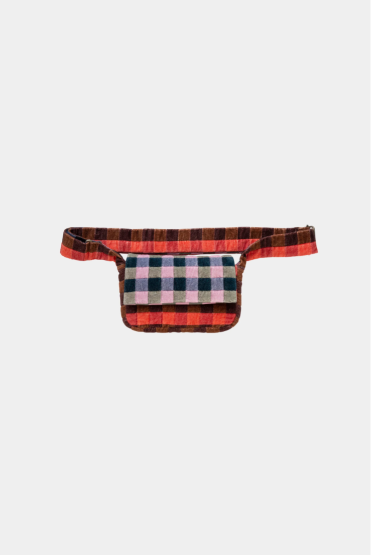 Ce petit sac est en velours de coton très doux, matelassé, entièrement doublé en polyester .