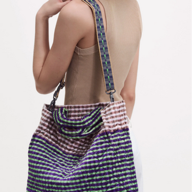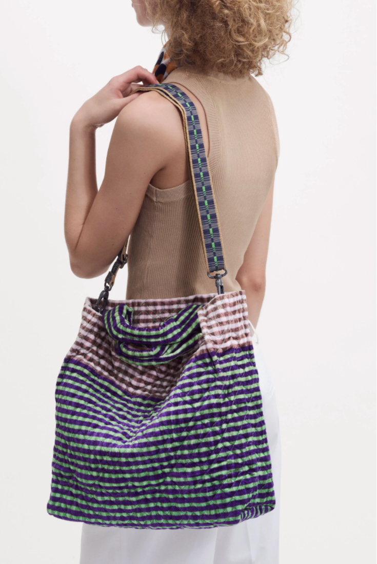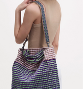 Double anse, complétée d'une bandoulière tissée, réglable et amovible, harmonisé au coloris du sac.