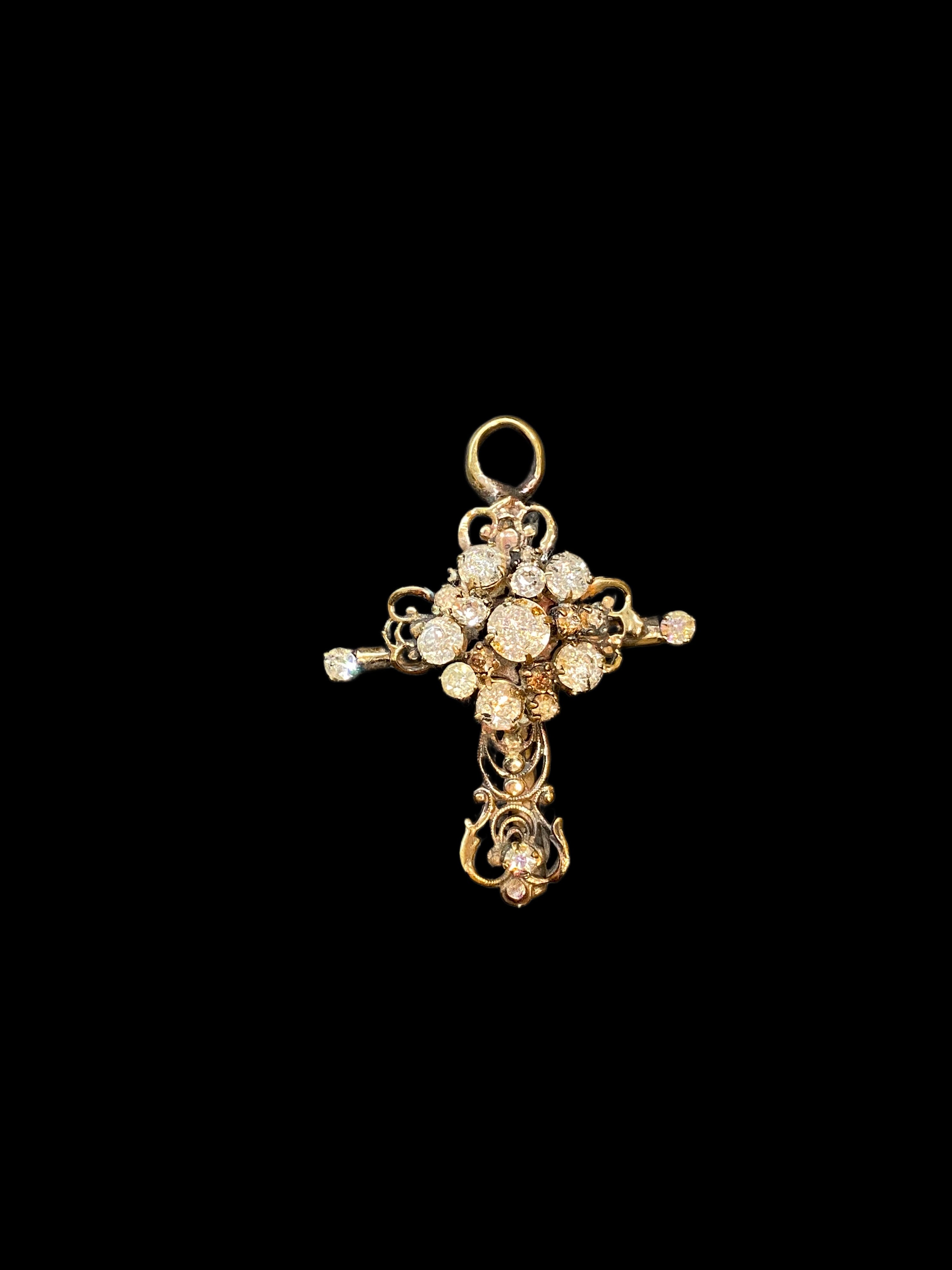 Les Croix sont de tailles et de compositions différentes. Aucune ne se ressemble. Celle-ci est en laiton avec des pierres au centre qui forment une fleur.