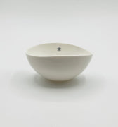 Elle fait partie de la collection "Un moustique à ma table". Nous avons imaginé avec la céramiste Sophie Masson cette série d’assiettes et petits gobelets en porcelaine artisanale. Ce sont des pièces uniques sur lesquelles elle a incrusté notre Moustique avec un poinçon avant la cuisson.