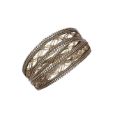 Ce bracelet double tour est composé d'un ruban en lurex mordoré, délicatement rebrodé de chaines en laiton à la finition or vieilli, le bracelet peut éventuellement se porté en ras le coup