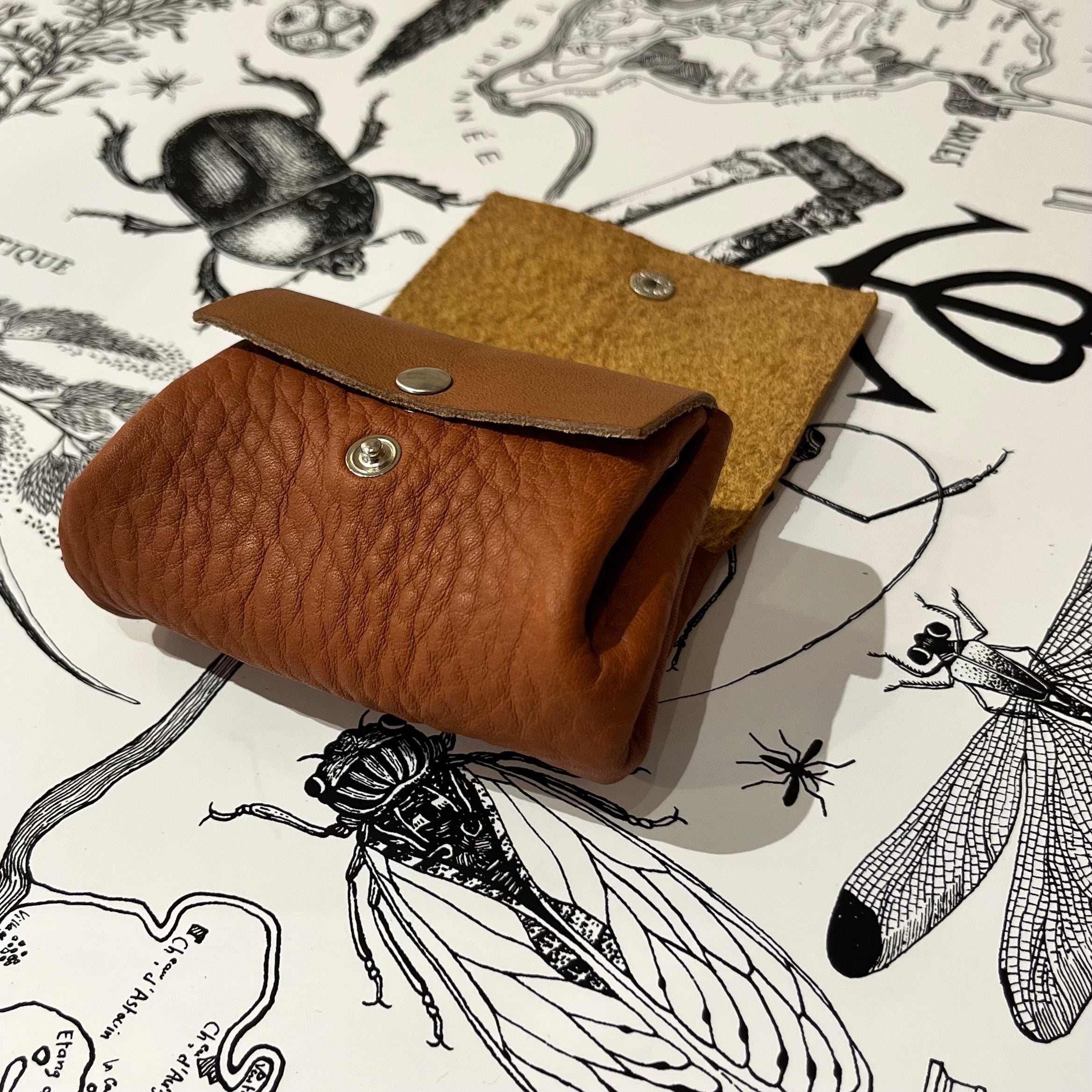 Le porte-monnaie des familles, avec ses trois soufflets fermés par un seul bouton pression, est ultra-pratique. En plus, le premier soufflet intérieur est fermé lui-aussi par un petit revers d'un autre cuir avec un bouton pression. On peut donc y mettre ses cartes, ses billets et sa monnaie. Il mesure 9 cm de large, 7 cm de haut et 4 cm de profondeur.