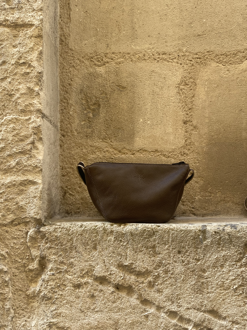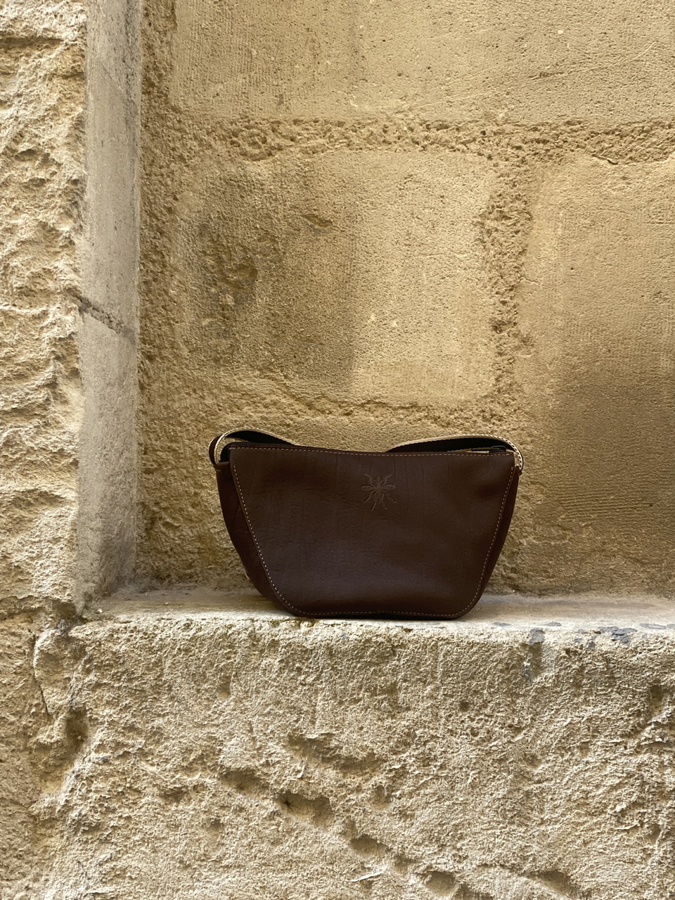 Les dimensions du format petit du sac Hobo sont de H. 13 x L. 24 x P. 10 (à la base) cm. Il ferme par une fermeture éclair noire et se porte par deux bandoulières qui s'attachent par un noeud à votre guise. Il dispose d'une petite pochette zippée à l'intérieur d'un cuir d'une autre couleur et attachée par une petite bandoulière.