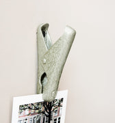 Inspiré par une pince de batterie de voiture à l'ancienne, ce clip solide tiendra vos photos, liste de courses ou reçus. Le trou sur le dessus permet de le visser au mur. La couleur est une peinture martelée. Matière : Aluminium moulé. Dimension : 10 cm.