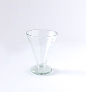 Les verres MAISON D’ALEP arrivent de Syrie. En dépit de la guerre, des souffleurs de verre parviennent encore à travailler dans de petits ateliers familiaux à Damas. Le verre utilisé provient de bouteilles recyclées et la couleur varie en fonction de la température du four. Les premiers sortent clairs, puis de plus en plus foncés. Dimensions : H:10CM