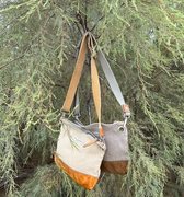 Ce sac est en toile de coton et cuir de veau, il se porte en bandoulière. Il mesure L25 x H19 x P5 cm. Il a été fabriqué en Italie.