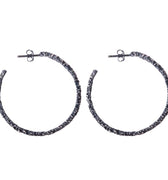 Créoles en Argent 925 Oxydé composées d'un anneau de micro billes de tailles inégales, d'un diamètre de 18 mm et d'une largeur est de 4 mm. L'épaisseur est de, plus ou moins, 2,5 mm.