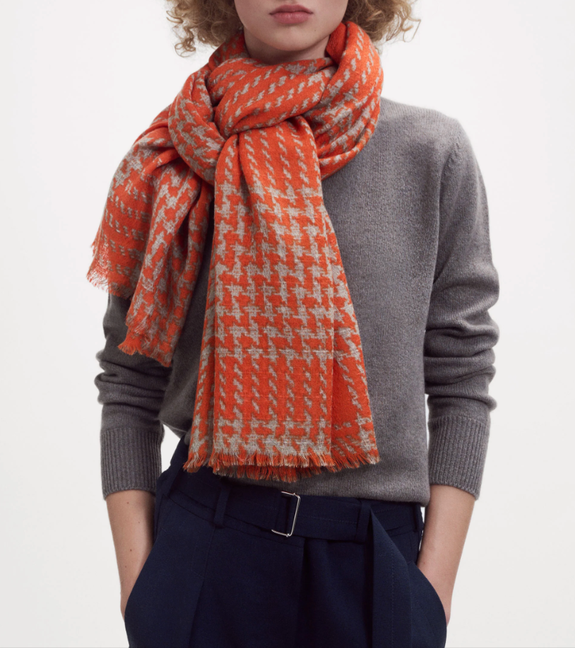 Grande étole 100% laine au tissage fin, très doux au toucher. Modèle iconique, interprété avec de nouveaux duo de couleurs.