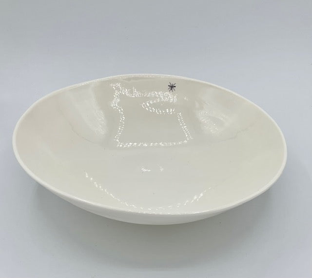 Il fait partie de la collection "Un moustique à ma table". Nous avons imaginé avec la céramiste Sophie Masson cette série d’assiettes et petits gobelets en porcelaine artisanale. Ce sont des pièces uniques sur lesquelles elle a incrusté un moustique avec un poinçon avant la cuisson.